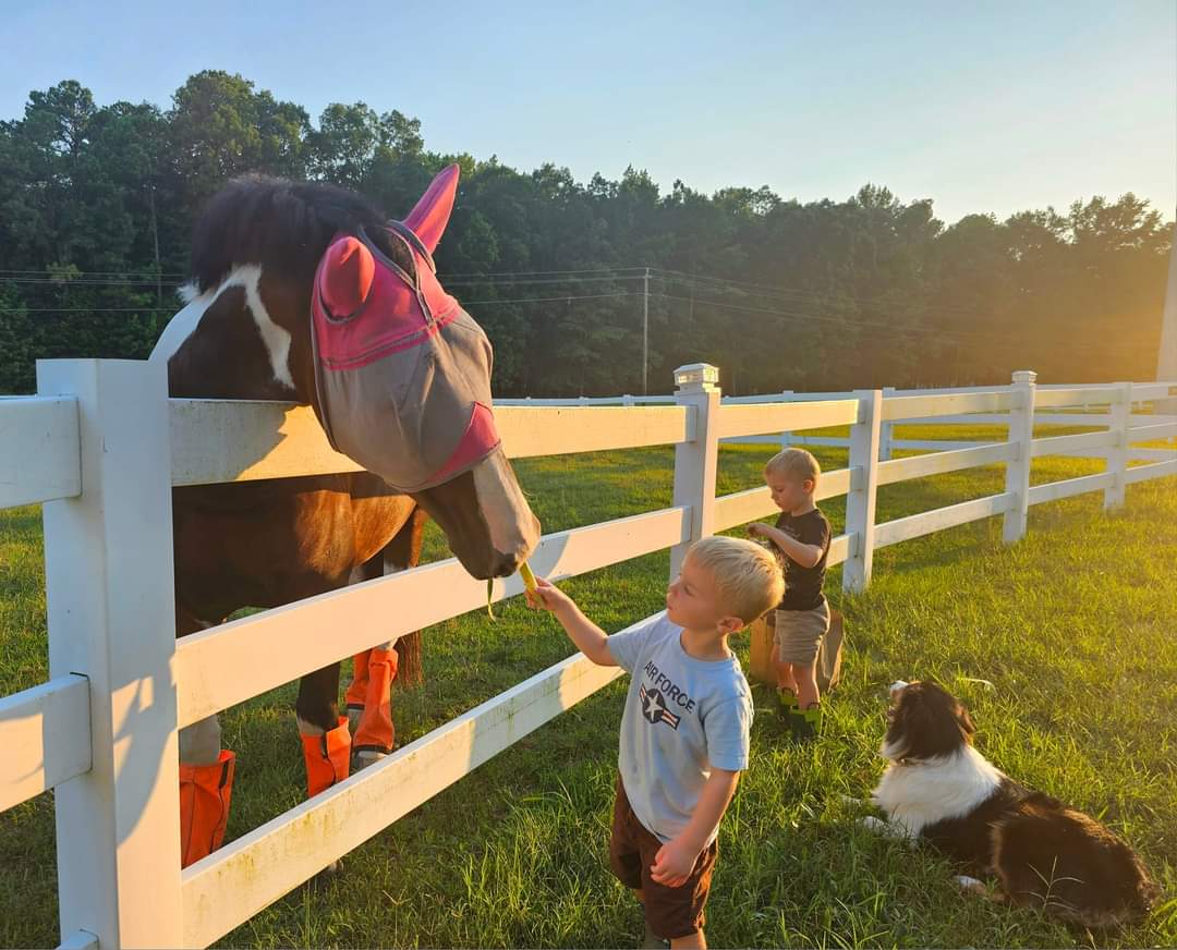 We’re a working family farm in Chesterfield, Virginia. We offer fresh eggs through our Roadside Egg Stand (stocked on Tuesdays), seasonal chick sales, simple overnight HorseBnB pasture stays, and heavy-duty farm services for land management type activities
